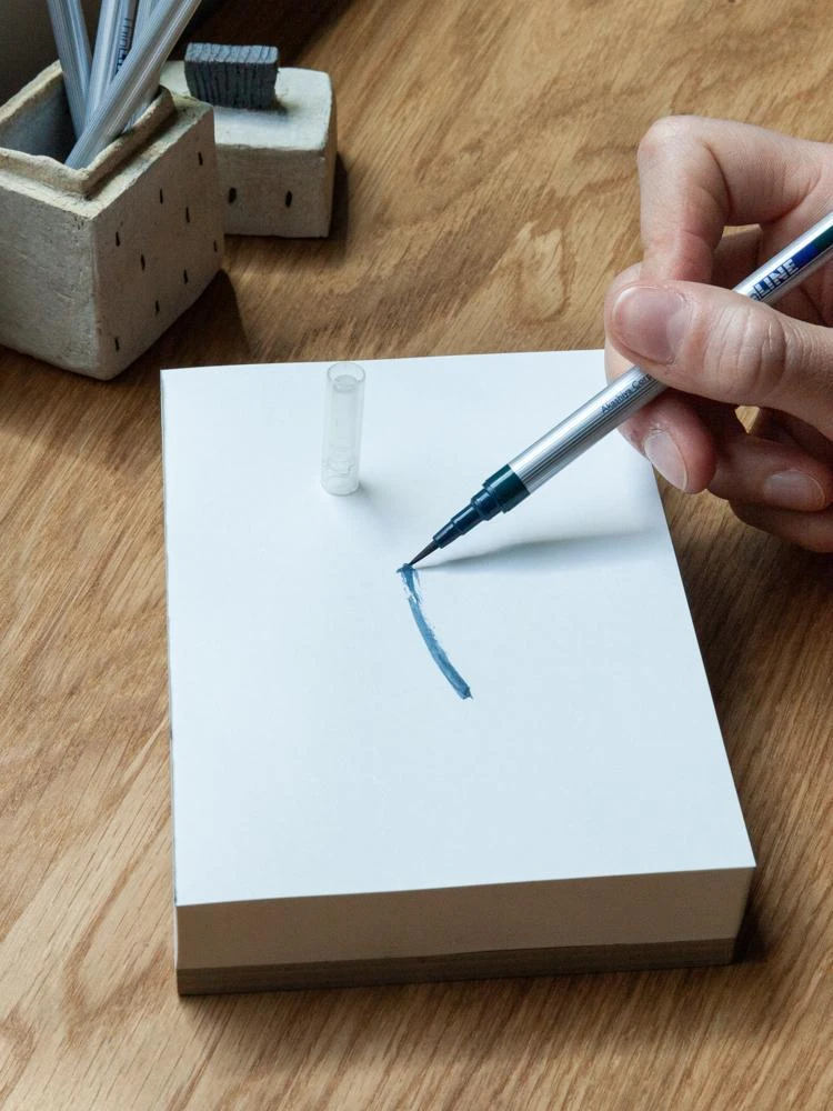 Akashiya ThinLine Brush Pen quickly became a favorite tool of professional illustrators and stationery aficionados thanks to a superfine tip inspired by elegant makeup brushes – a feature perfect for calligraphy, drawing, or sketching. Each pen is handmade by brush artisans in Chiba, Japan, with the goal of making the act of writing feel like painting a watercolor with words. Winner of the 2009 Design Merit Award.