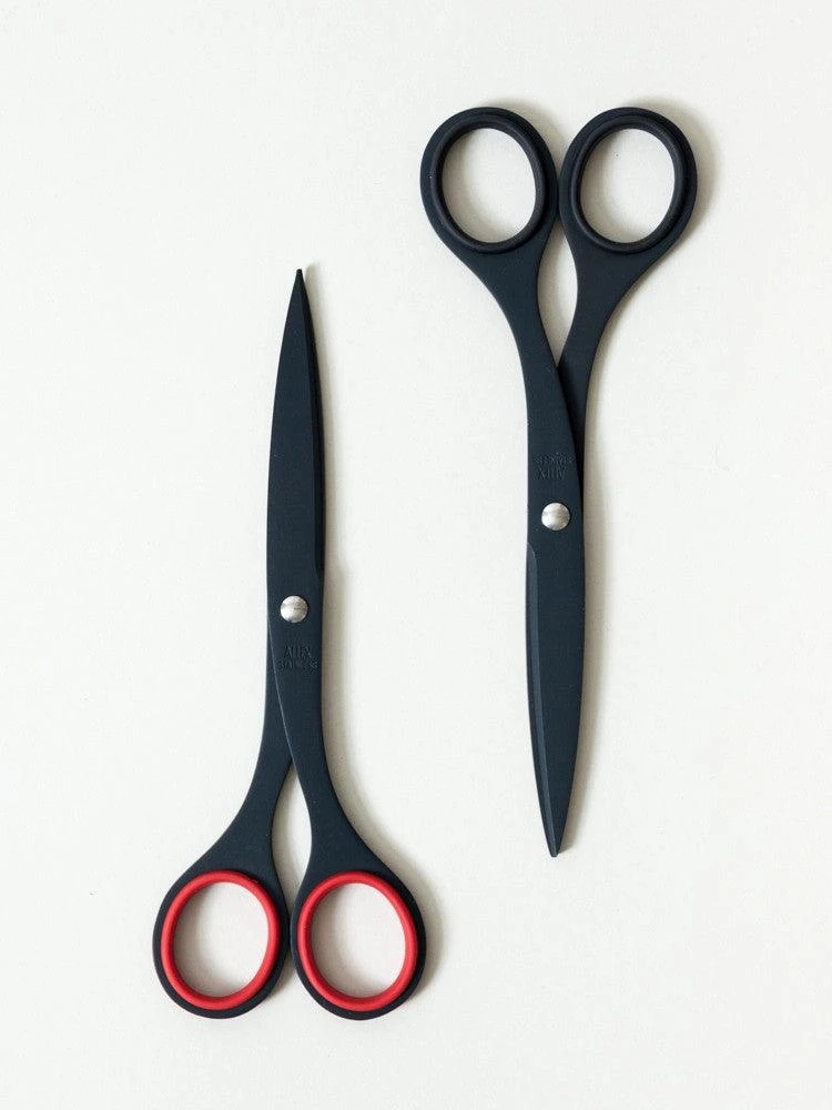Lightweight and sharp, the Allex Matte Black Stainless Steel Scissors are designed to cut through reams of paper, plastic, and even sticky surfaces like duct tape. Its blades are coated with Teflon for optimal wear resistance, while its grips are cushioned with soft rubber rings for maximum comfort. With its sleek matte black finish, this office essential will look as good sitting on your desk as it does tackling your toughest projects. Also available in a traditional stainless steel version.