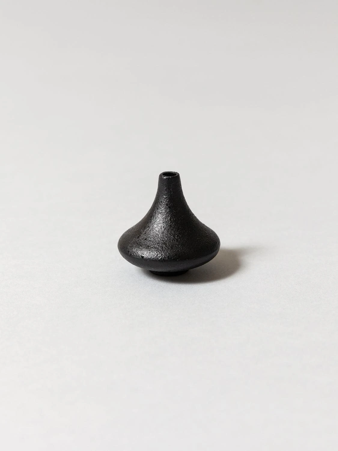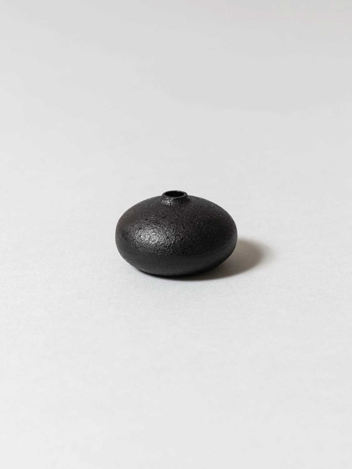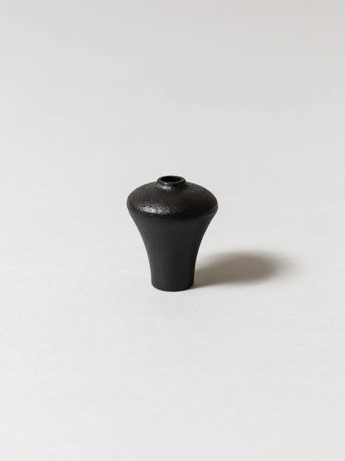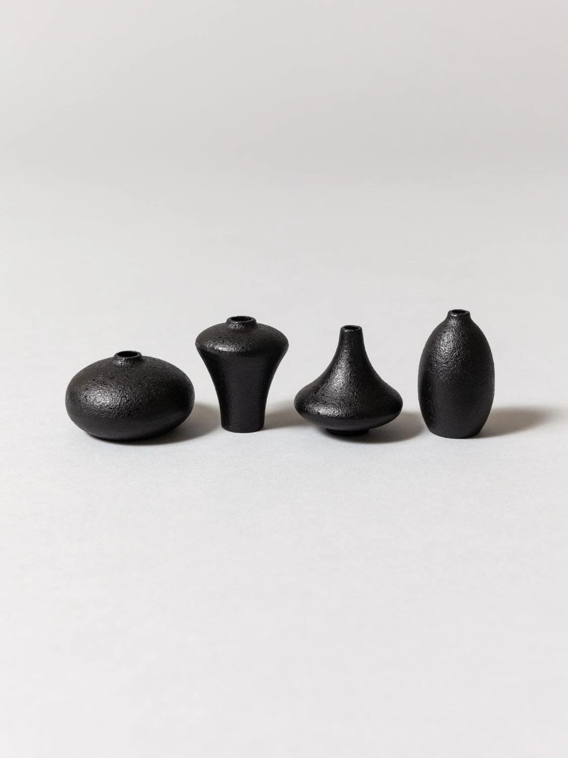 Small but with a weight that belies their size, these CK Bud Vases offer a note of simple artistry that fits into any space. Their clean lines, diverse shapes, and matte black color allow them to match a wide variety of aesthetics, while the signature texture of cast iron offers some satisfying tactile feedback. Add a little flower or two and see how a cold, dark backdrop can make a tiny blossom shine.