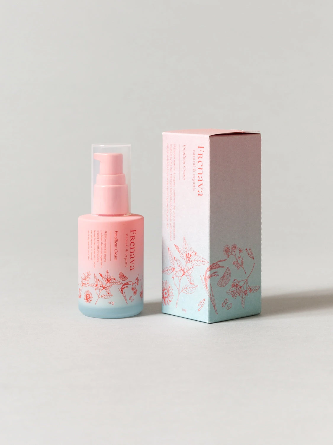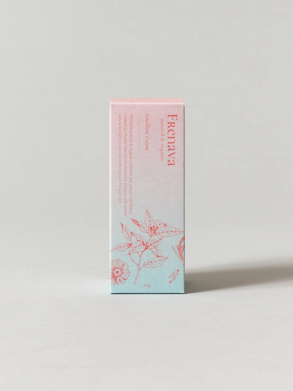FRENAVA Emollient Cream blends the moisturizing duo of saké lees and squalane together with a bouquet of fresh herbs, fruits, and wildflowers. Morning and evening, apply to any area of your skin in need of a little extra nourishment.