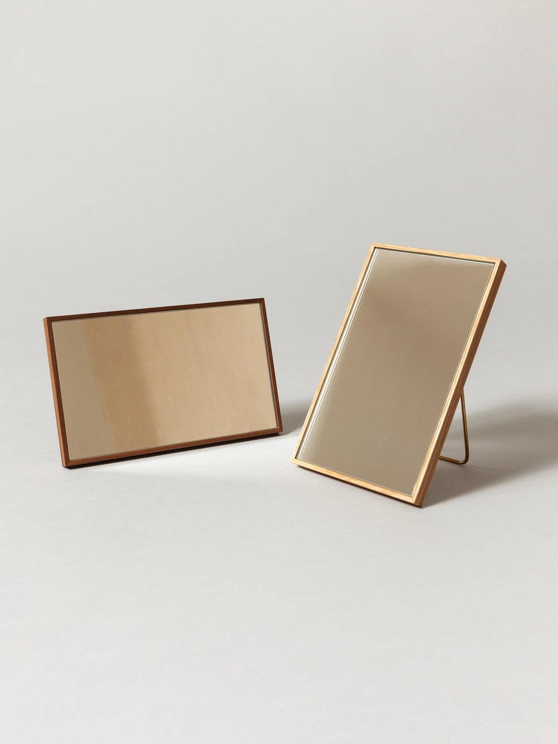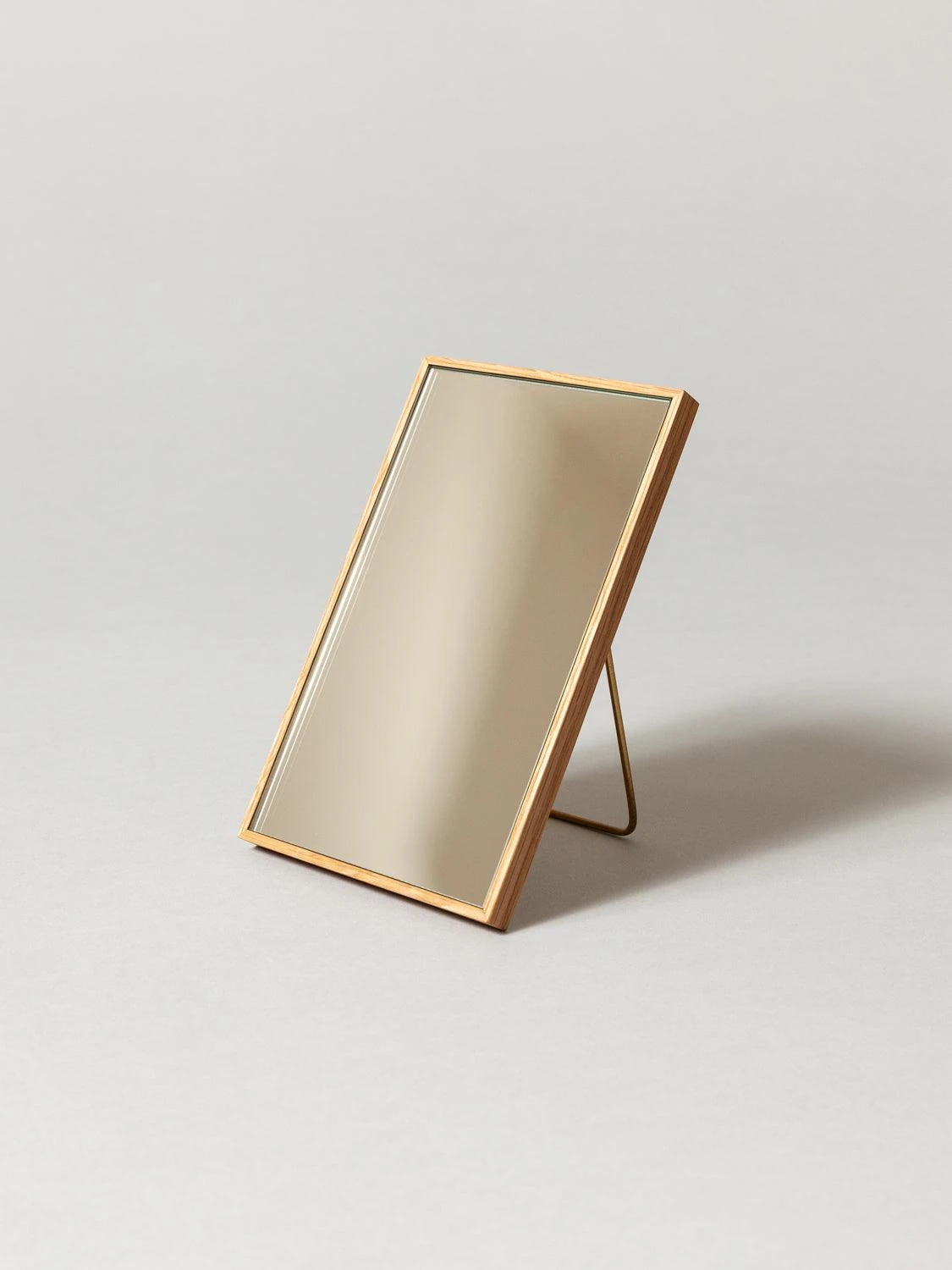Designed around the Golden Ratio – something of a sacred number to artists, designers, and other creatives for millennia – this elegant Hanada Stand Mirror is made by hand, every piece individually measured, cut, sanded, and oiled to produce a precise result. Each mirror can be propped up vertically or horizontally using the built-in brass stand to create an ideal viewing surface.