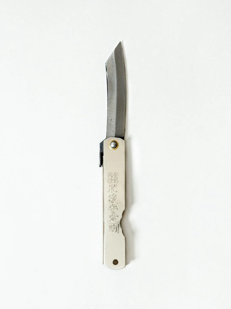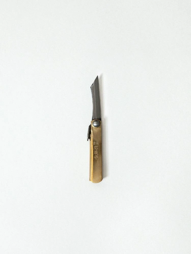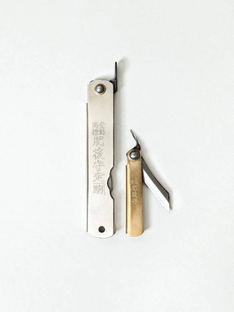 This cult classic pocket knife has been produced in Japan since 1904. Made from carbon steel for strength, the Higonokami pocket knife features a hand-forged blade that folds into the base and a small latch to reopen it safely. The Japanese characters for Higonokami are engraved on the metallic base, letting you carry a little piece of Japanese history with you wherever you go. Not for use on a keychain.