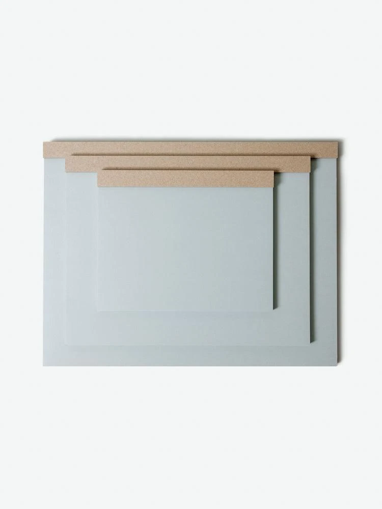 With their precision-cut edges and satin-smooth surface, these drawing pads bring a clean, architectural presence to any desktop. Each 70-sheet pad is mounted to a recycled cardboard base that provides stability and subtly contrasts with the paper, and because of the microperforation just below the binding, the pages tear away with little effort. Pairs with the Ito Bindery Memo Block.
