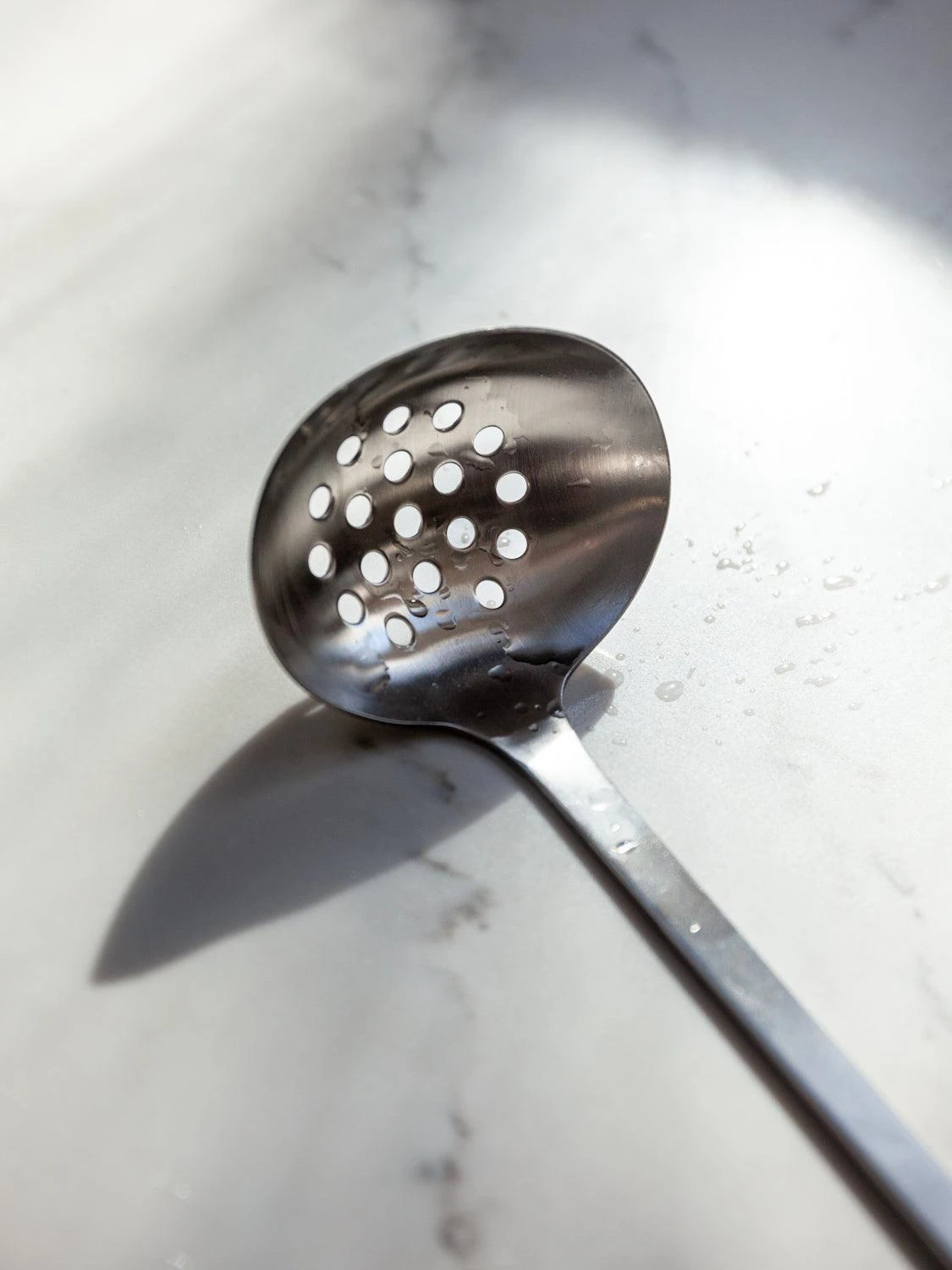 When it comes to kitchen tools, nothing is more important than practicality, and in this department – among others – the Kobo Aizawa Strainer Ladle does not disappoint. With a sturdy, simple design that prioritizes function over form, this stainless steel strainer offers maximum ease of use with a minimalist aesthetic. Includes a leather strap for easy hanging.