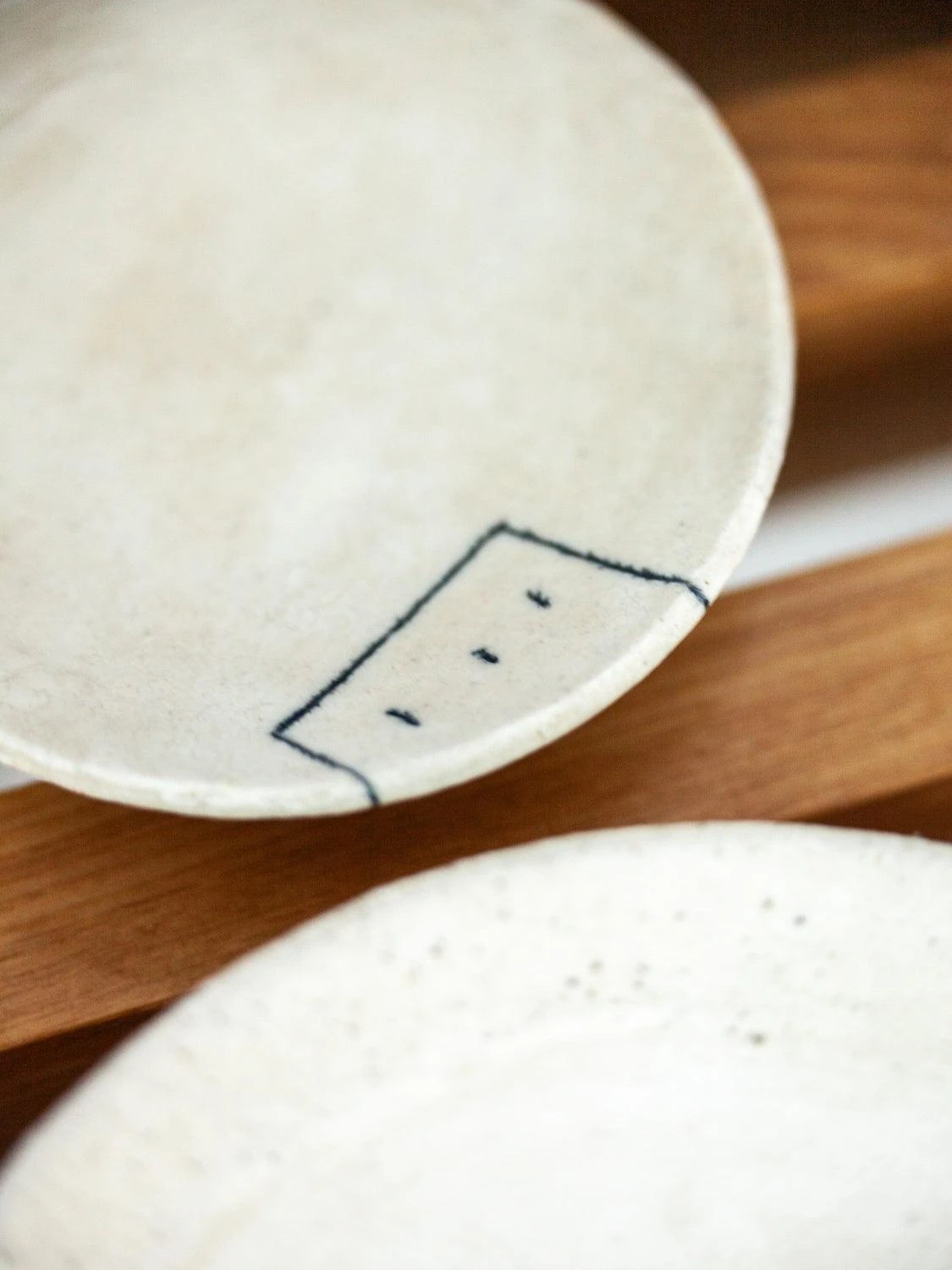 Taken literally, the term mame-zara means “bean plate” – a reference to its small size – but this dish will truthfully be right at home when serving any kind of cuisine. Its gently sloping sides make it an ideal home for dips and condiments, and its delightfully whimsical design lights up any tablescape. Pairs with the Rojinosora Small Plate.