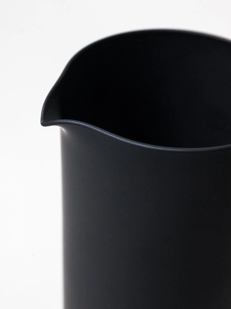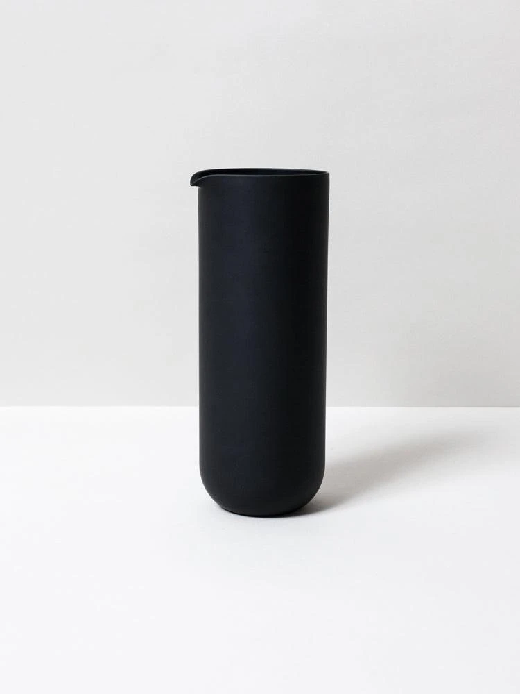 Tall and dramatic, the Matte Black Glass Pitcher stands out at the table, thanks to a monolithic form and distinctive pitch-black color that create a sleek, minimalist look. Pairs with the Matte Black Glass.