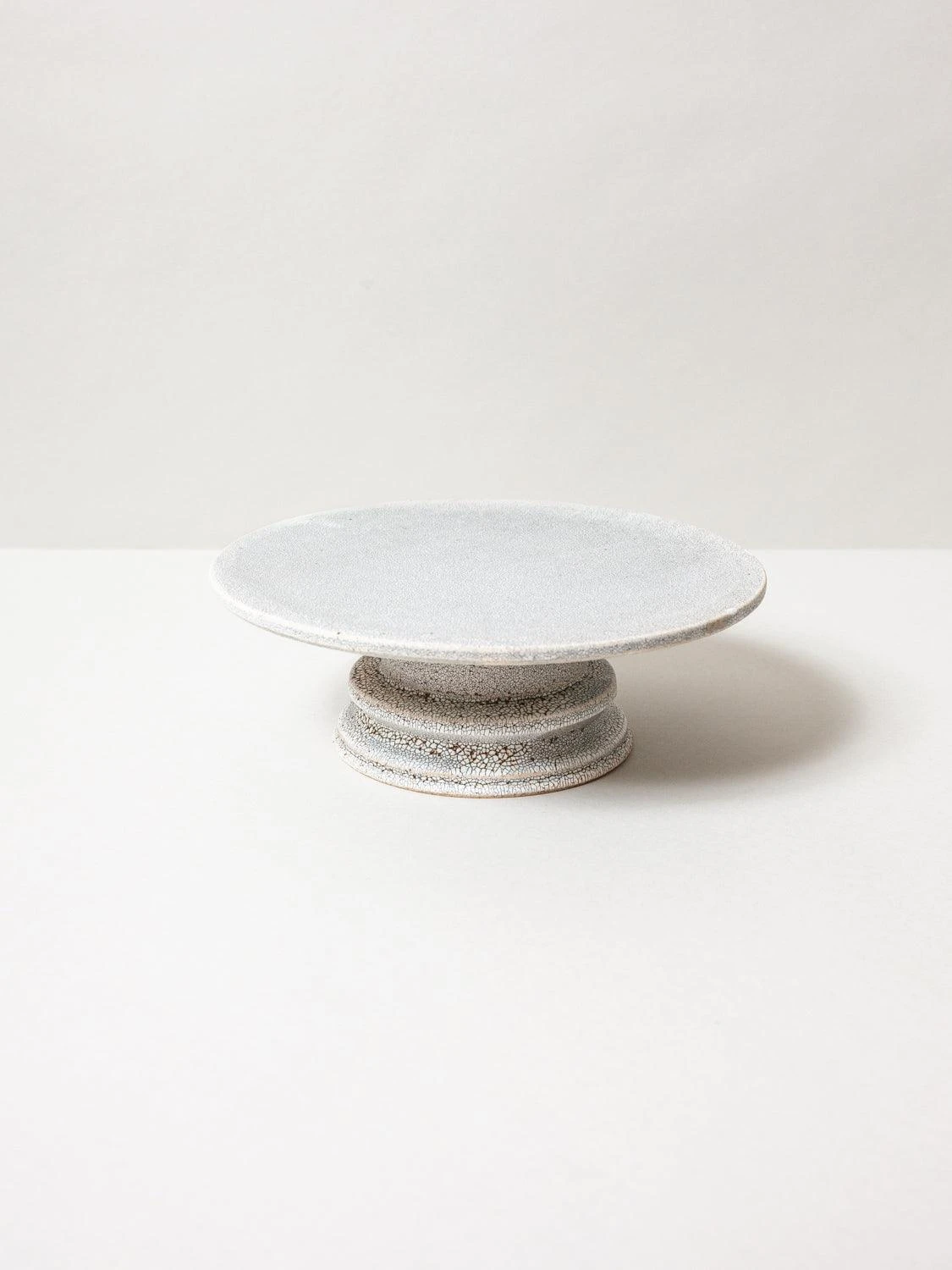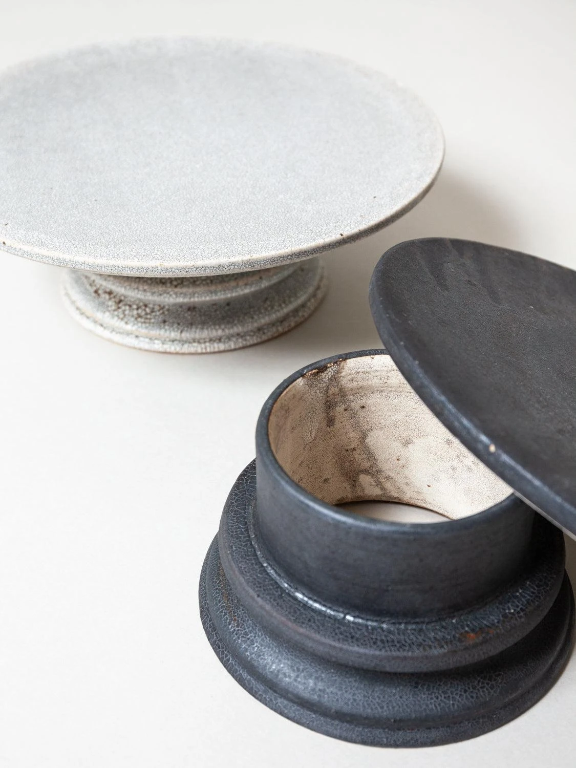 Part of the studio’s Fractal series, the Mishim Cake Pedestal is a marriage of discrete aesthetics: the crackling, textured glazes found in Japanese kairagi ceramics and the classical shapes common in Western architecture. Each pedestal comes in two pieces – a platter and a base – making it simple to lift off your baked goods for easy transportation or quick storage in the fridge. Add a dash of regal nobility to your next baking triumph.