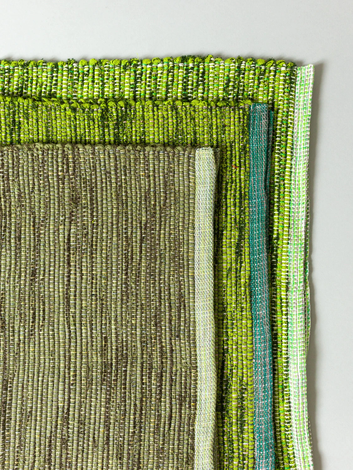 Each year, 2.8 tons of fabric gets trimmed away during the production of Kontex’s iconic Moku Light Towel. It was in these varied and vivid scraps that the manufacturer saw the prospect of a second life beyond the recycling bin — and thus, the Moku Handwoven Rug was born.