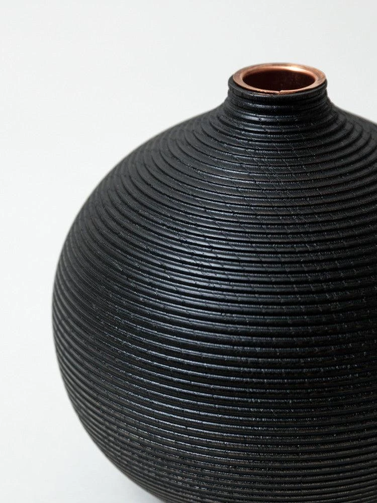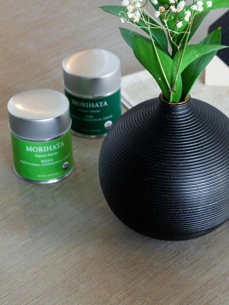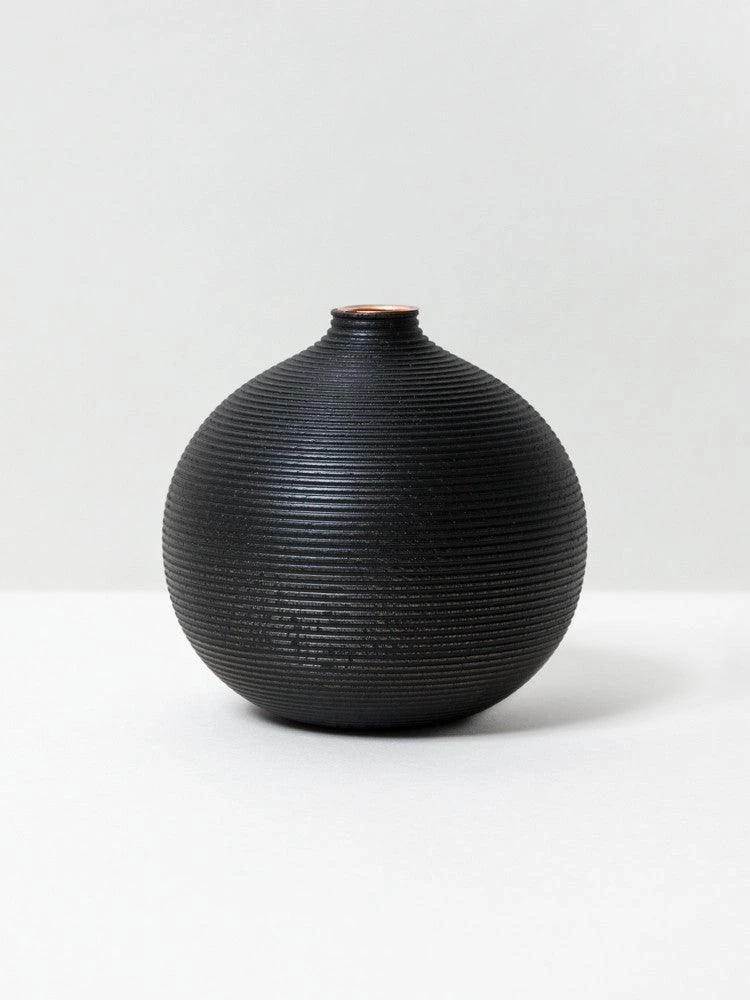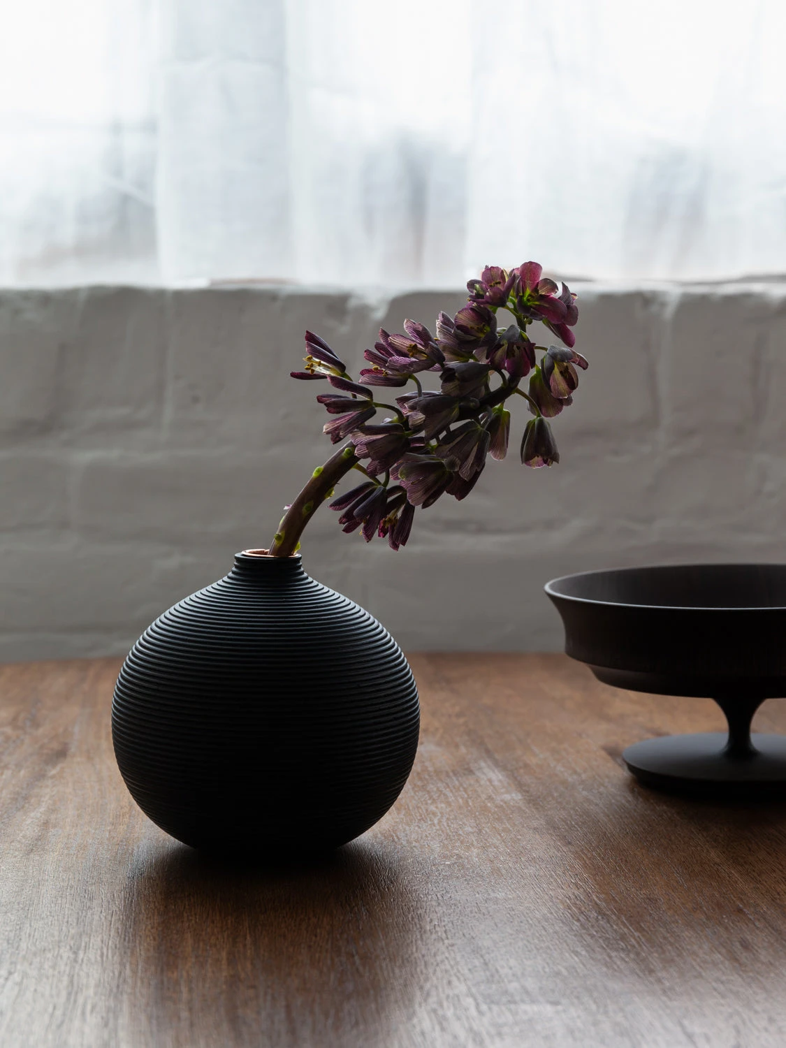 Musubi is the Japanese word for the spiritual power of growth that is found in all natural things. Inspired by this philosophy, the Musubi vase collection displays fresh-cut flowers with the same dynamic grace as if they were still growing in the earth. Each vase is hand-turned and carved from Japanese Zelkova wood, which is traditionally used to make Taiko drums and furniture.