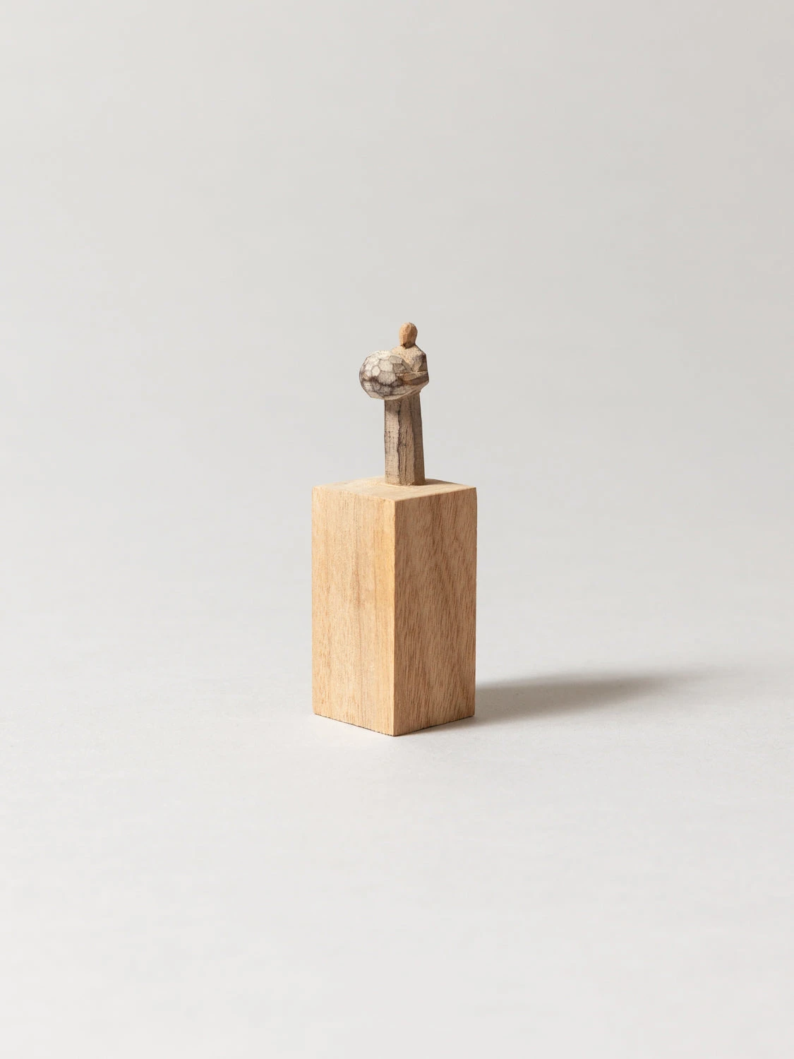 A small but dignified figure stands alone atop a pedestal, carved by hand into the stately form that is the Olectronica Wooden Statuette. This version is crafted from camphor wood and retains its natural color. Also available in a stained walnut version.