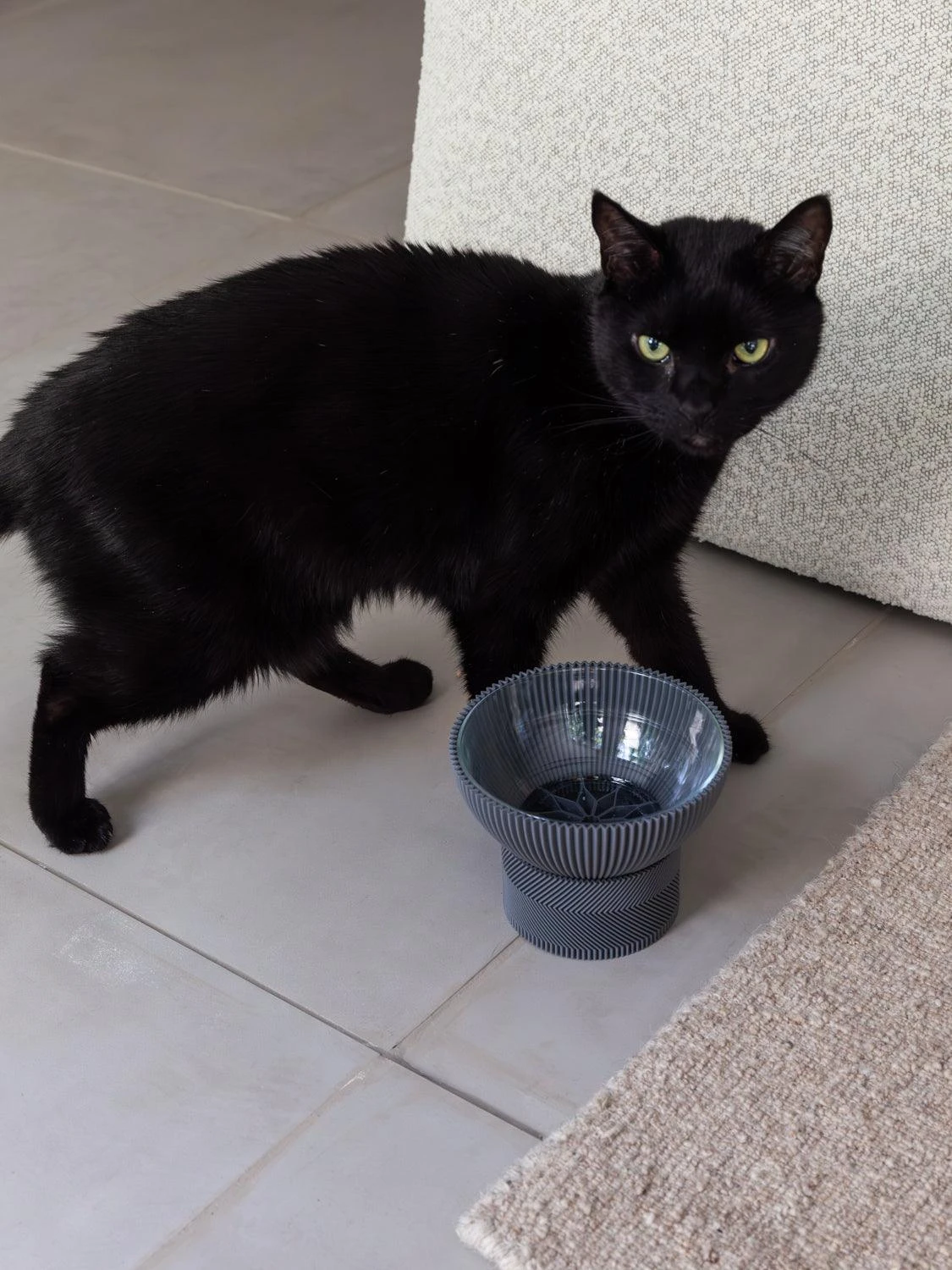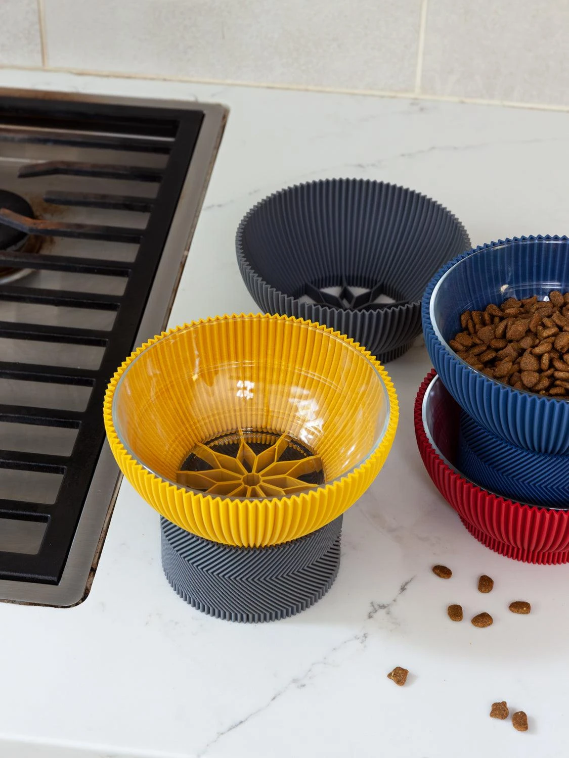 The Pogo Pet Bowl from Sohei Suzuki combines engaging aesthetics with eco-conscious design. Each bowl is 3D-printed using starch-based bioplastics derived from corn, potato and cassava crops, and their flexible stands (included) snap onto the base of the plastic exterior bowl. A small lip holds the interior Duralex bowl – constructed of thick French glass – in place while still allowing it to be easily removed for quick, convenient cleaning. Use with the stand for larger pets or without it for smaller companions.