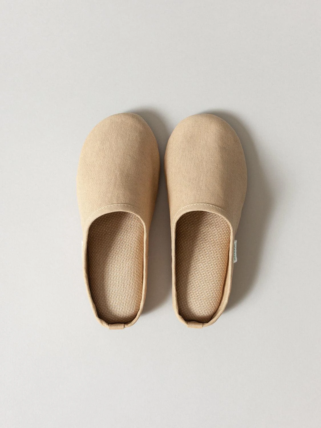 A pair of room shoes is an essential part of every Japanese home. This minimalist version is made from Sasawashi fabric, a pill-free fabric that effortlessly absorbs moisture and odors from the skin. The combination of antibacterial kumazasa fibers and breathable washi keeps these room shoes feeling fresh and feeling comfortable in any season.