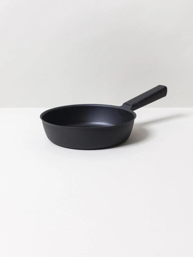 Light. Weight. Cast. Iron. The Featherweight Cast Iron Pan from Sanjo Special Cast is the fruit of centuries of metalworking advancements by the metallurgists of Tsubame Sanjo. This collection of frying pans features walls measuring only 1.5 mm in thickness, resulting in a pan that’s barely half the weight of traditional cast iron cookware yet retains the same superior heat-conducting properties. Somewhat smaller than typical pans, the Featherweight Cast Iron Pan is designed to move seamlessly from a compact oven to the tabletop. Its high walls ensure food stays put, and the sloped lip allows for easy transfers from pan to plate.
