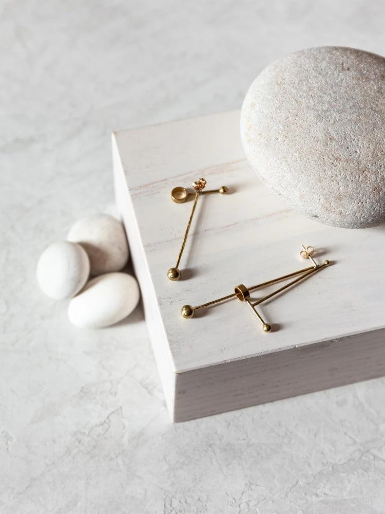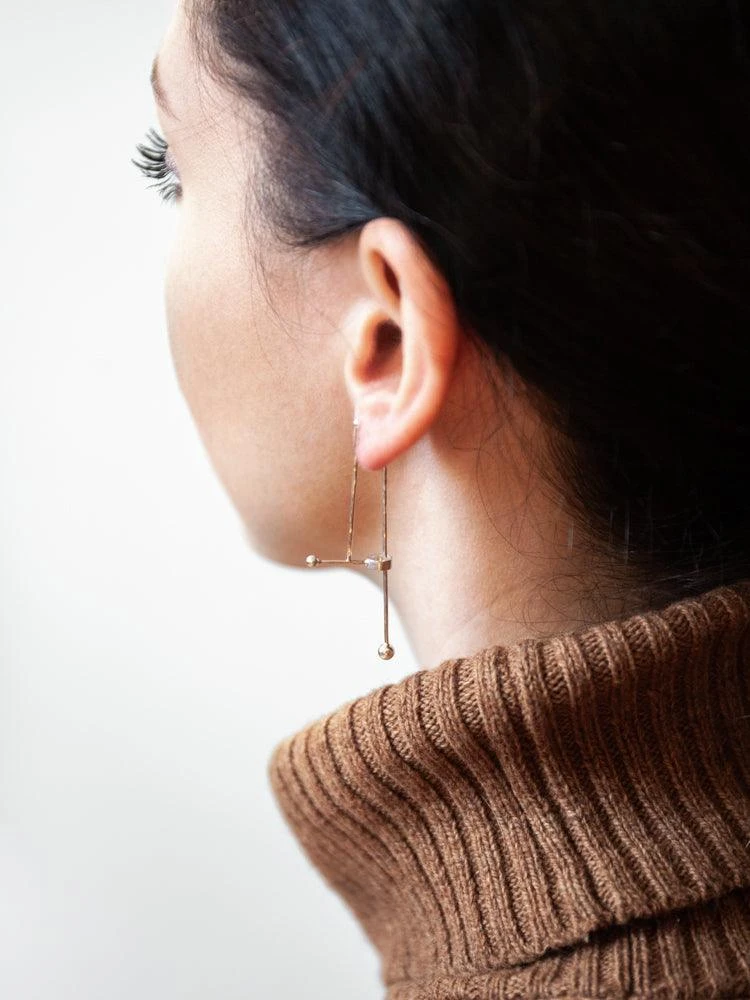 Husband and wife team Takahashi creates jewelry with motion in mind. Each piece takes full advantage of all three dimensions to create a sense of depth or generate movement. Inspired by ancient wisdom surrounding the moon and stars, their often asymmetrical artwork can be combined to create unique looks for any occasion.