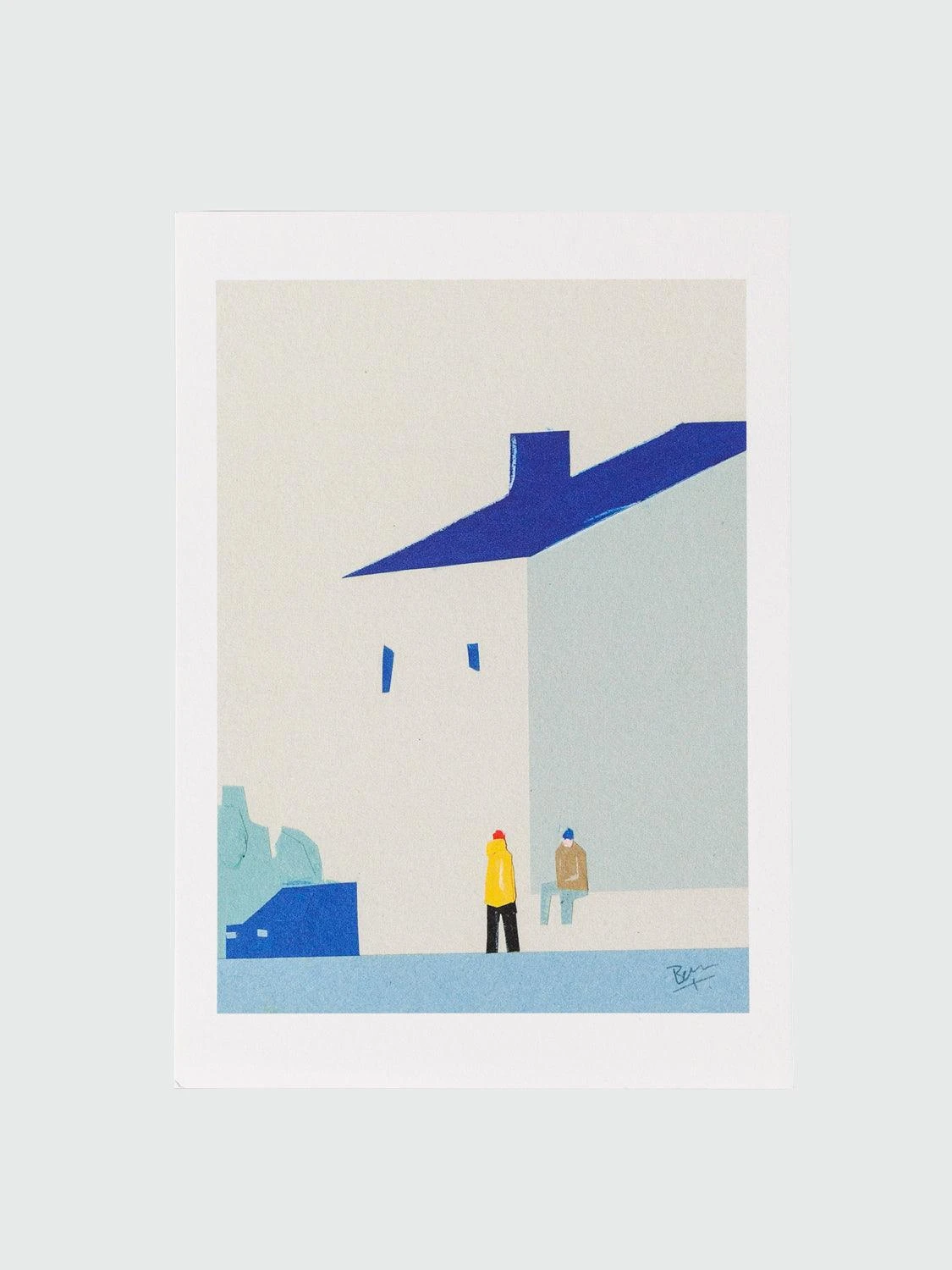 A collage from artist Taku Bannai depicting a casual conversation on a free afternoon. The back of the postcard is blank and has plenty of room for a lengthy message.