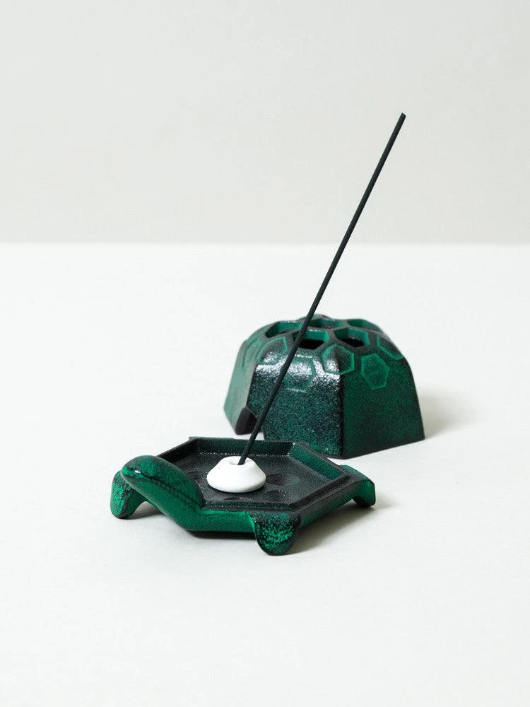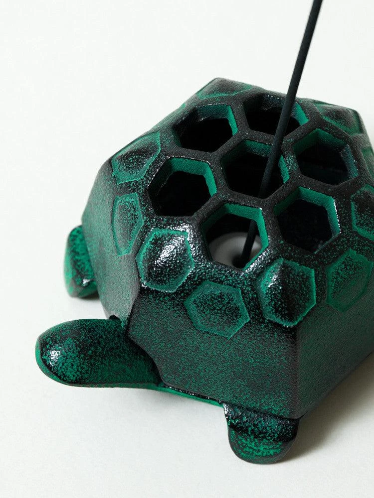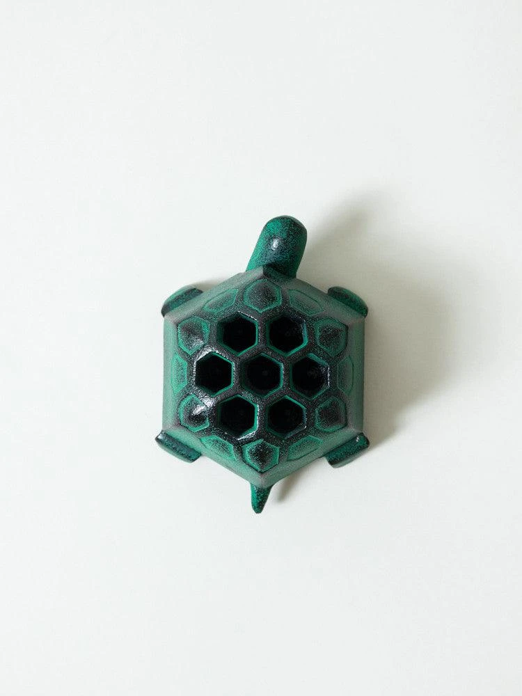 With its significant heft and eye-catching design, this cast iron turtle incense holder brings a charming accent to any surface. Seven hexagonal holes decorate the top of its removable shell. Inside, you’ll find a small ceramic ring to keep your incense in place.