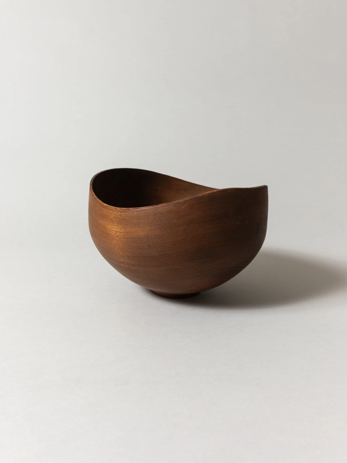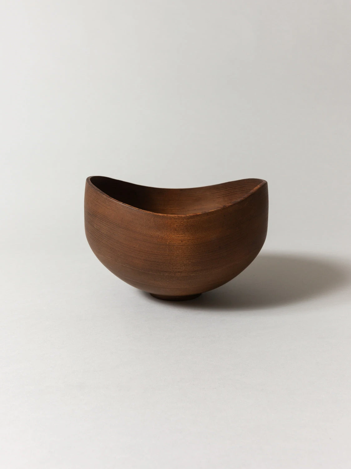 Bring a piece of Japan’s legendary forests into your home with this beautiful bowl from master woodworker Kenji Usuda. The organic edge of the vessel emphasizes its natural origins while topping gracefully upturned sides that showcase a striking wood grain. This piece, coaxed from a stately elm, is wonderfully smooth to the touch and coated in food-safe walnut oil and beeswax to protect the surface of the wood and add a lustrous shine.