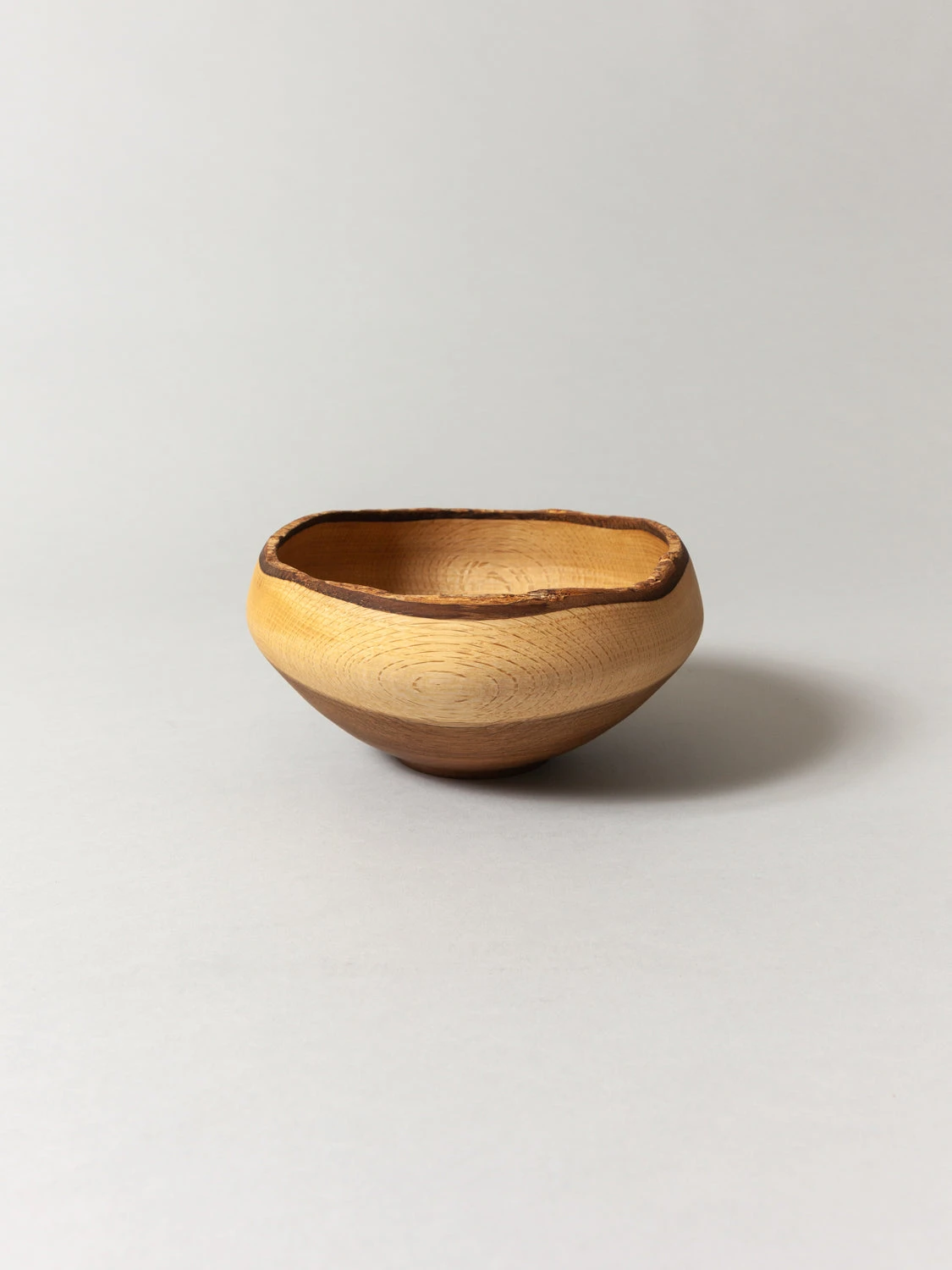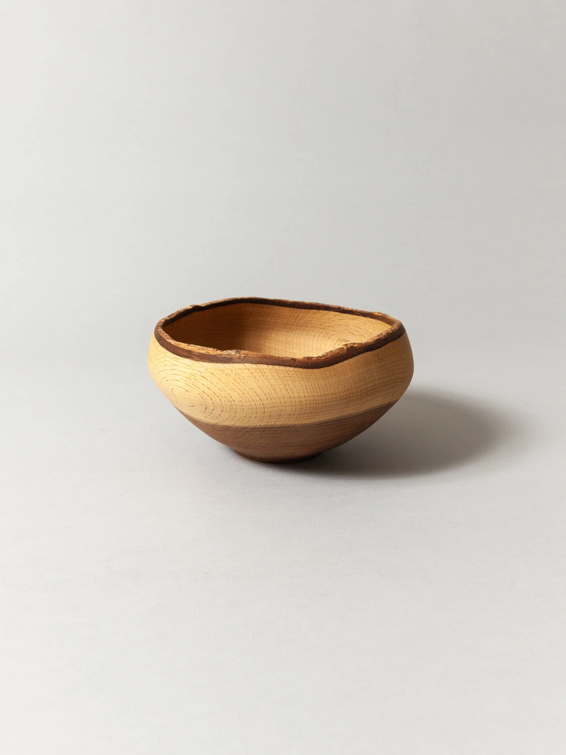 Bring a piece of Japan’s legendary forests into your home with this beautiful bowl from master woodworker Kenji Usuda. The organic edge of the vessel emphasizes its natural origins while topping gracefully upturned sides that showcase a striking wood grain. This piece, made from a mighty oak, is wonderfully smooth to the touch and coated in food-safe walnut oil and beeswax to protect the surface of the wood and add a lustrous shine.