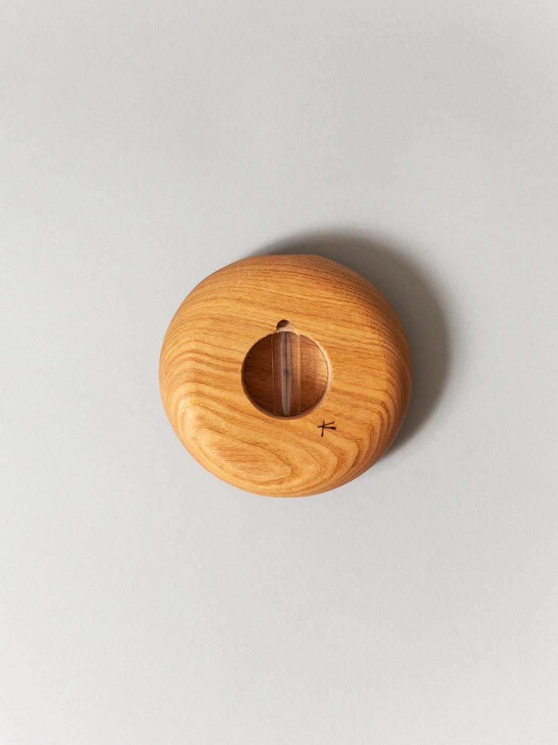 Bring a piece of Japan’s legendary forests into your home with a beautiful hanging wall vase from master woodworker Kenji Usuda. This piece is lovingly crafted from local elm wood harvested by the artist himself and features an inner glass vase to comfortably house your favorite greenery as well as a slot for easy installation on your wall.